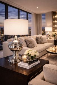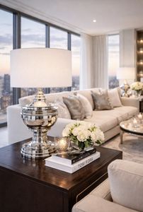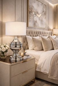 Bordlampe Spring Hill 28x53Cm Black Nickel med hvit skjerm