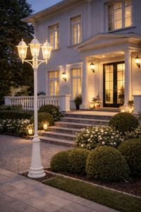 Stolpelykt i sort eller hvitt. Stamme av støpt aluminium og klarglass. Armaturet er kun tilpasset lavenergilampe. Kobles til klemme 3x2,5 mm². Teleskopstolpe med makslengde 2,5 m. Markfeste medfølger.