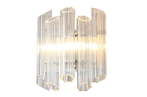 Lekker vegglampe i lampe serien Praha med understell i sølv  L:31 H:32,5 D:17 cm. Rørene er av krystallglass. Lampen kommer uten ledning, kun sukkerbit til å montere ledning på.
